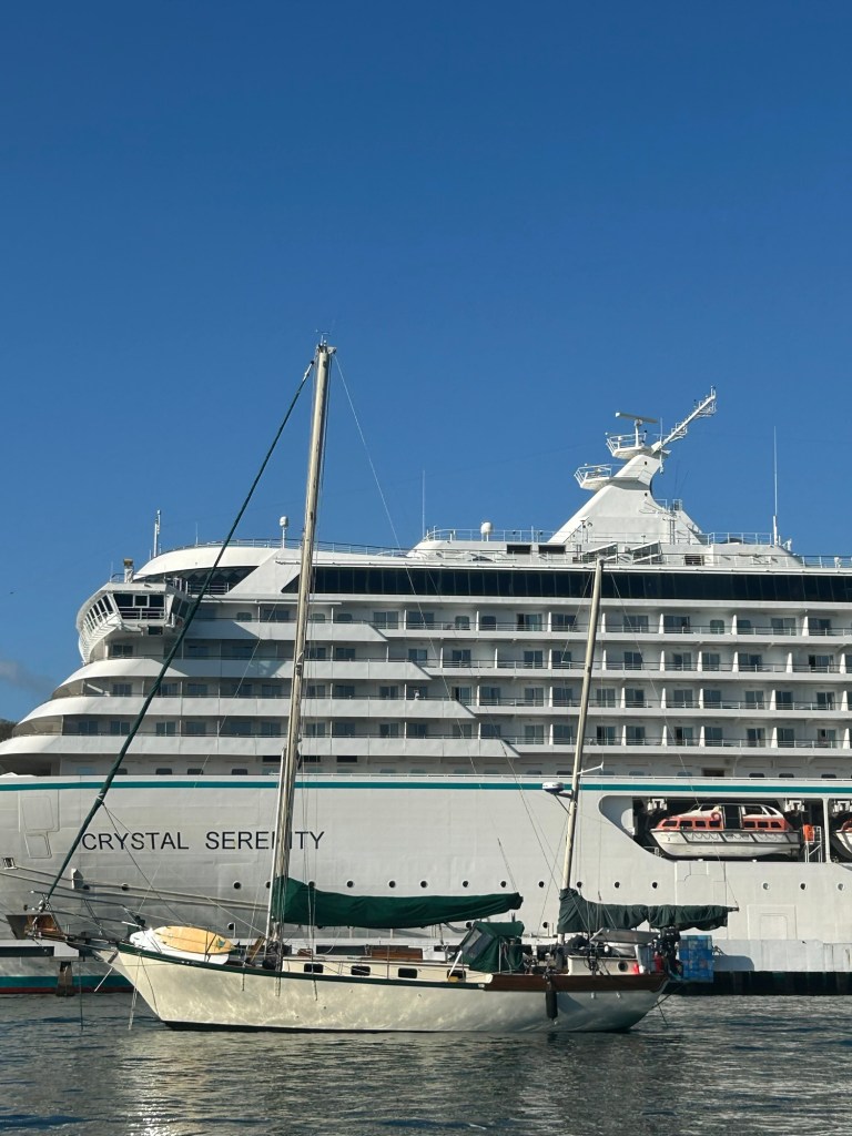 We raced a cruise ship out of the bay.