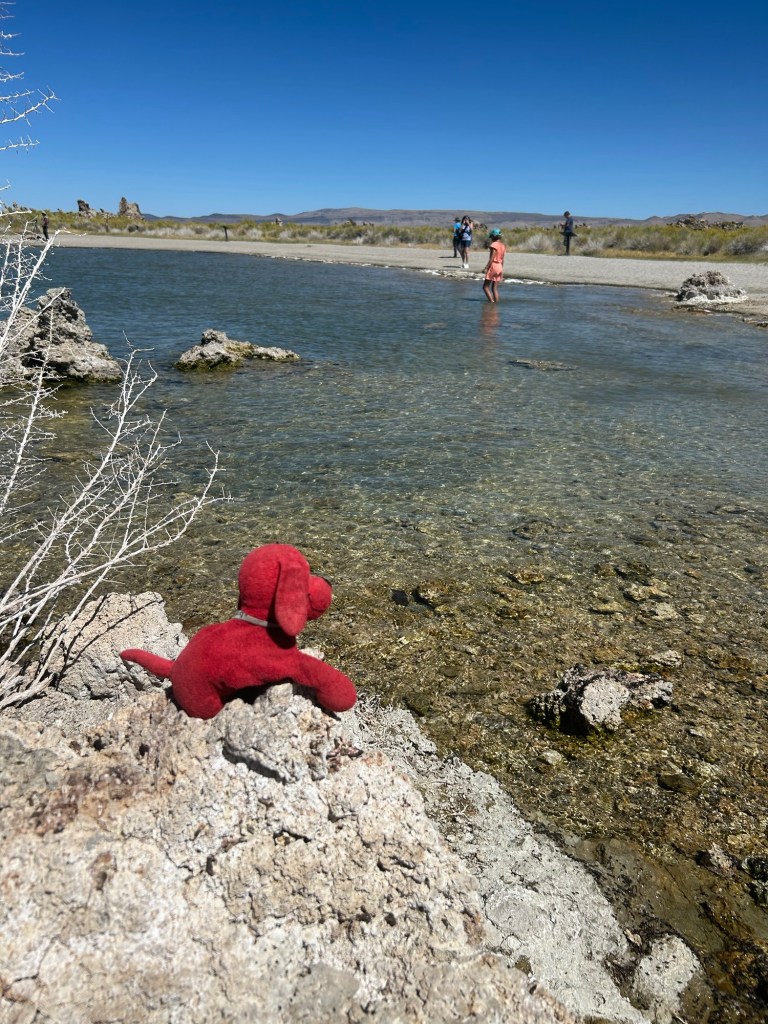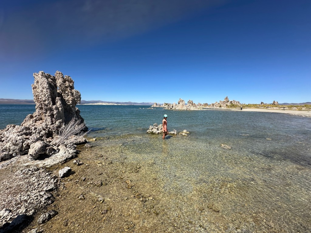 After floating in Mono lake. Syd showing everyone how salty it was. Only 8hrs to the next fresh water shower.