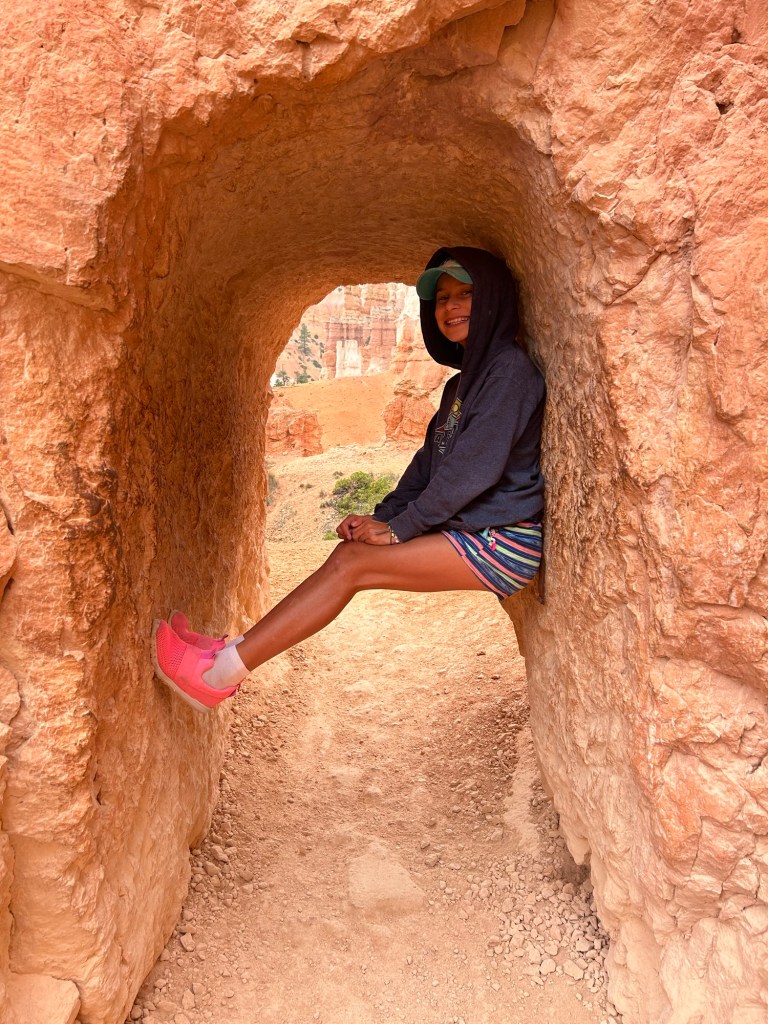 Arriving in the dark after our adventure I let the girls sleep in. We stayed at Ruby’s Inn in Bryce Ciiy right outside the park. Ruby set up the first lodge at the site of the current Bryce Canyon Lodge at the turn of the 20th century. When the National Park took over they kicked him out and he moved his operation just outside the park. He built a little empire here. I don’t think there’s one business in this town that his descendants don’t own. Rubys Inn., RV park, restaurant, general store, rock Shop, ice cream shop, stables, atv’s and a gas station. It’s as if Cracker Barrel bought a cruise ship.