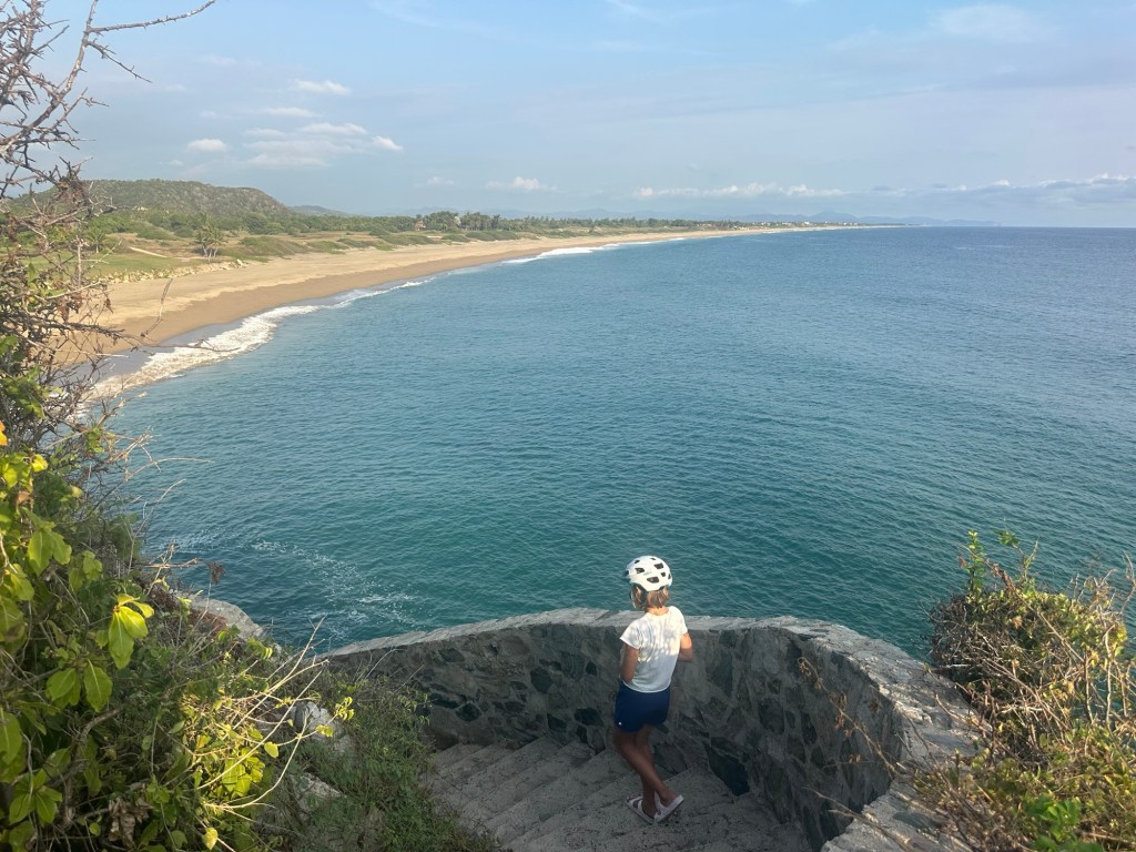 Syd and dad took off on the bike for an adventure to find the wreck of a giant ship that washed ashore during hurricane Patricia in 2005. That same hurricane had a direct hit on Barra and devastated the town. It was still in bad shape in 2016 last time we were here, but today, although there are still a lot of gutted buildings, it’s alive and well as you’ll see from our photos.