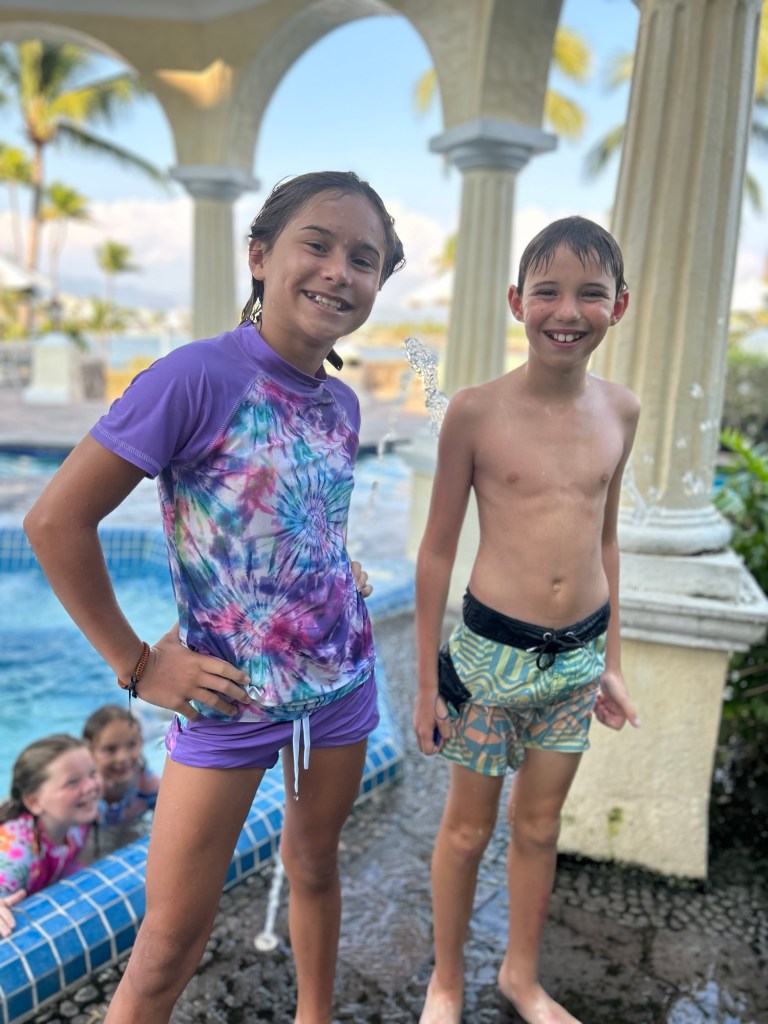 Mom and Syd went on a walk one day and discovered an abandoned hotel that looked at first glance like it might just be another section of the place we were staying. It looked like one day the owners just walked away. Syd took her friends there later telling them she’d found a haunted hotel.