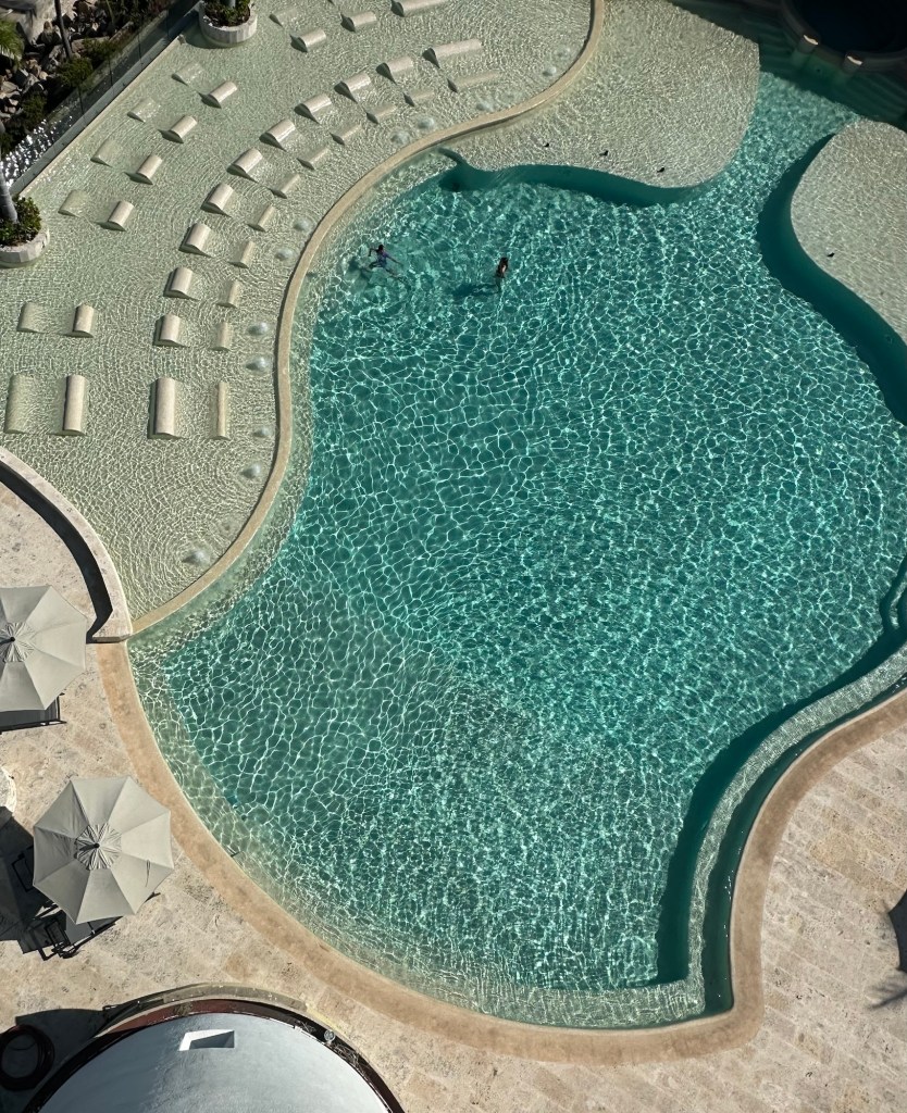 Didn’t see any homeless. Elderly indigent folks sit by the door to a convenience store opening the door for tips. A billionaire has stepped in to restore some of the amenities and get the tourists back into town. Including the marina we stayed at. We tied up to the one remaining dock, the rest were still strewn around the harbor waiting to be demoed or hauled out to sea. …Deck fitings were crushed water was a hose from shore and we shared the one electric hookup for a dozon boats. But the pool was open and the clubhouse was close to being finished. One nice thing about being on the boat we’ve learned to do with a lot less convenience. So you shrug at the obstacles and relish the luxuries when they come along without taking them for granted.